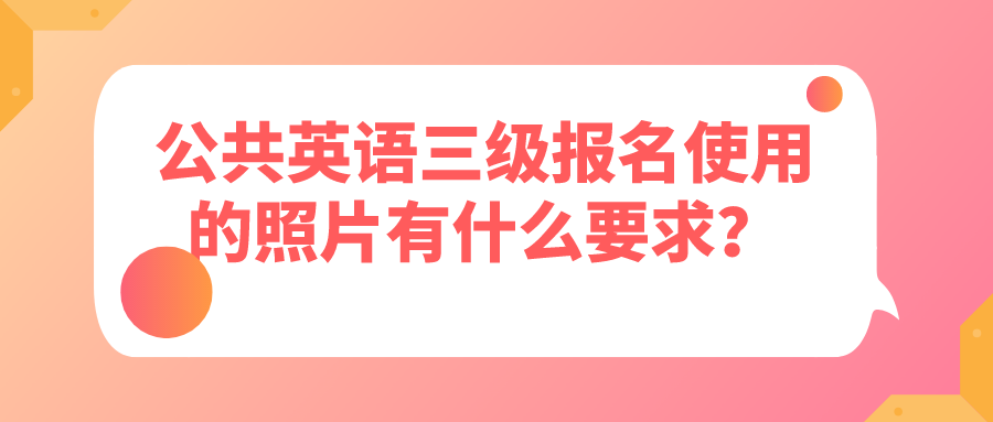 【导读】公共英语三级报名使用的照片有什么要求?很多同学对于这个问题不太清楚,那么公共英语网带大家一起了解一下,具体内容如下: