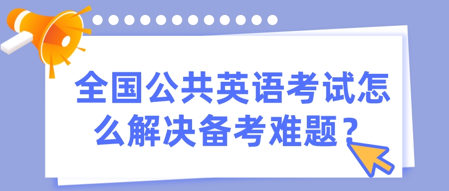 【导读】全国公共英语考试怎么解决备考难题?很多同学对于这个问题不太清楚,那么公共英语网带大家一起了解一下,具体内容如下: