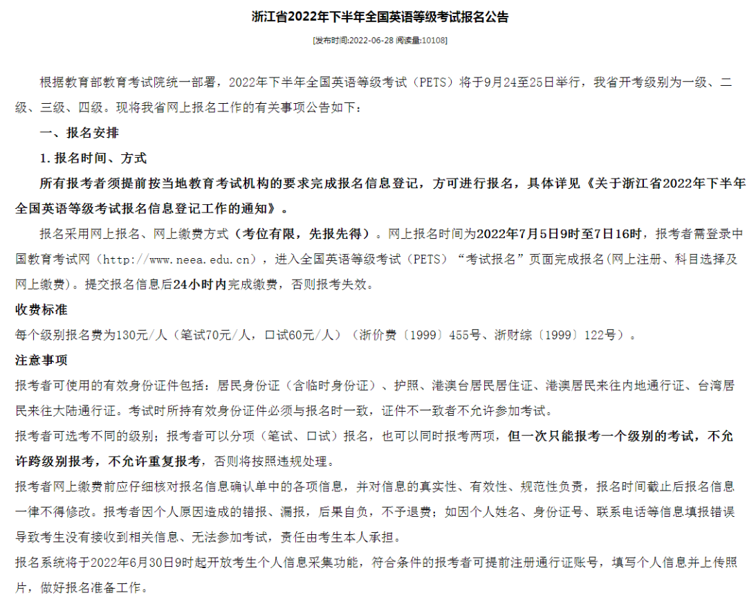 本文标签:公共英语等级考试 政策公告 2022年下半年公共英语(PETS)各地区考试考点和报考注意事项!
